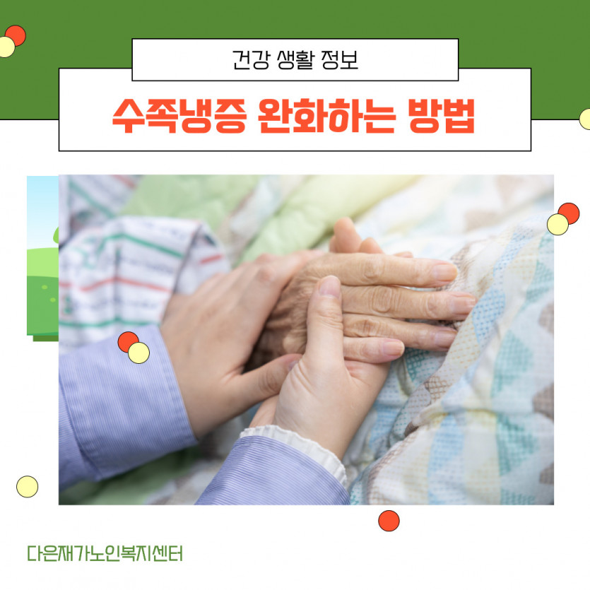 수족냉증은 혈액순환이 원활하지 않아 손과 발이 차가운 증상을 말합니다. 수족냉증을 완화하기 위해서는 혈액순환을 개선하는 것이 가장 중요합니다. 따라서 다음과 같은 방법을 시도해 볼 수 있습니다.