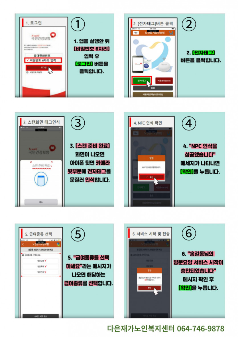 스마트 장기요양 앱 "서비스 시작" 사용방법이었습니다.