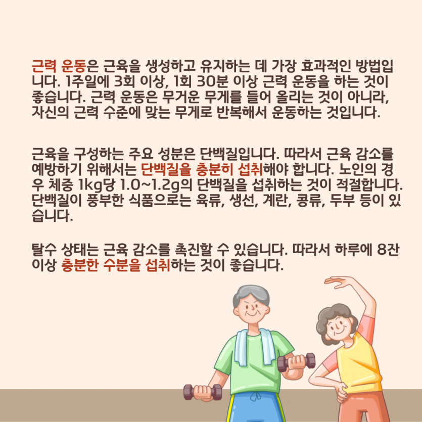 위의 방법들을 실천하면 근육 감소를 예방하고 건강한 삶을 유지하는 데 도움이 됩니다.